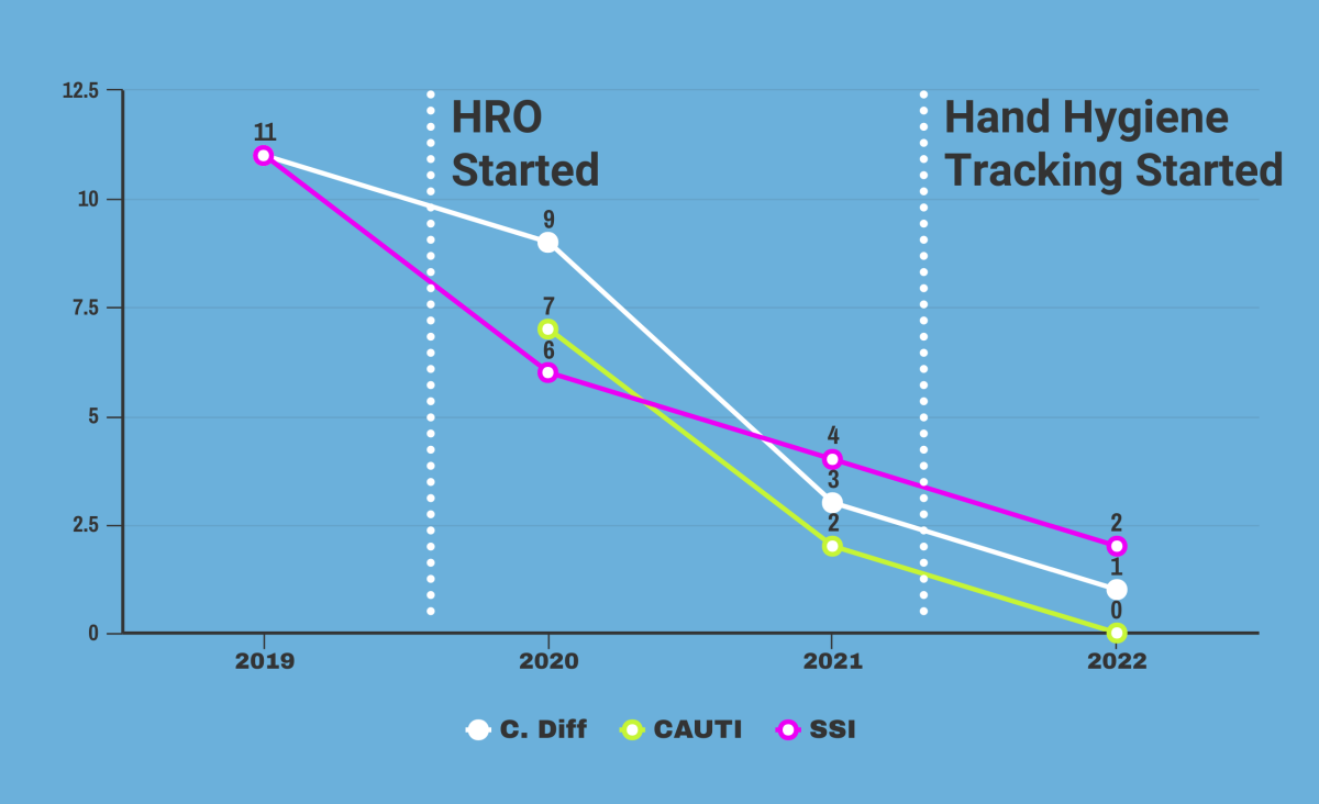 As another key quality initiative, NMC is measuring rates of hospital-acquired infections to keep these stats low as we focus on patient safety and high-quality care. Our attention to continuous improvement and High Reliability principles are helping hard-wire changes that are leading to declining rates.